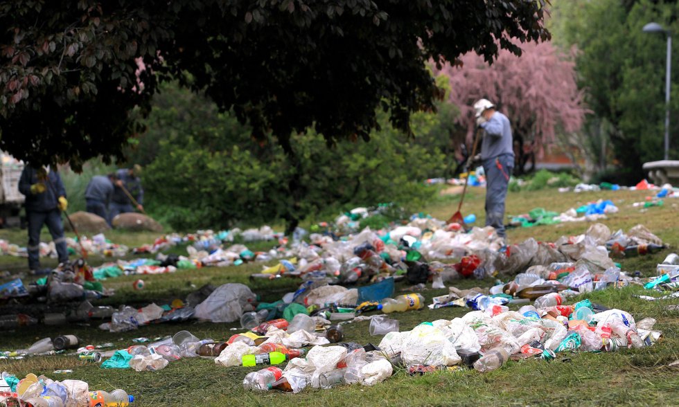 La fiesta comenzó en torno a las dos de la tarde. Centenares de estudiantes se iban juntando en las praderas de la universidad. A pesar del refuerzo de seguridad, algunos estudiantes llevaban bebida; otros se hacen vendedores informales de cerveza por un día para sacar algo de dinero. Sobre las seis de la tarde, a juzgar por la afluencia, la fiesta estaba siendo un éxito. Como todos los años. Justo a esa hora se cierran los accesos a las facultades para evitar que algunos estudiantes se cuelen en sus dependencias y ebrios de alegría provoquen desperfectos. Tampoco se permite el acceso a los baños. Un par de horas después, los desperdicios dominaban las praderas universitarias de la complutense.